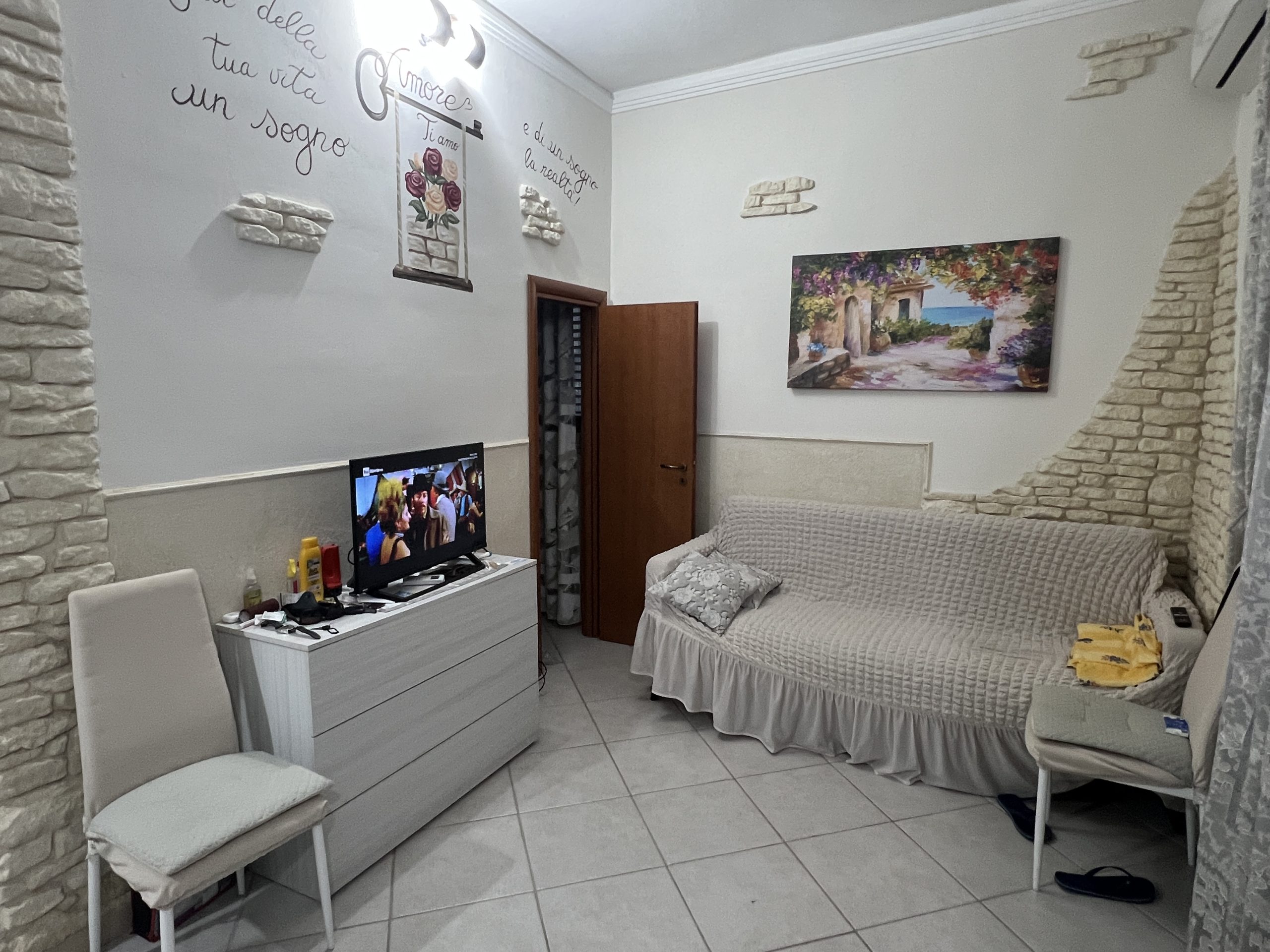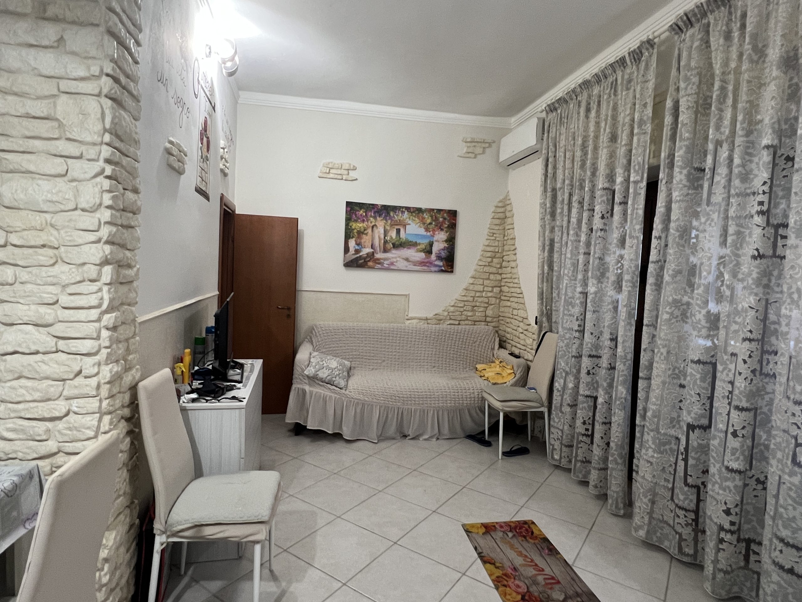 zona giorno con cucina a vista, bagno con doccia e camera da letto. Compreso nel prezzo l’arredamento come nuovo.